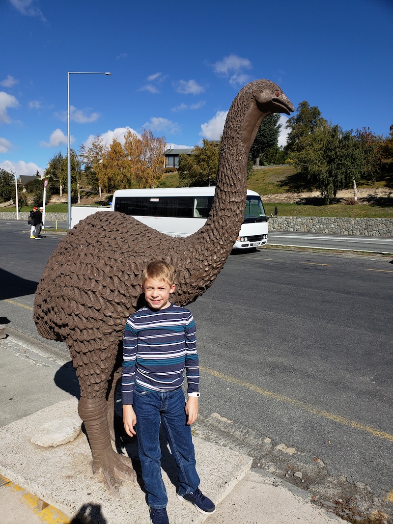We wandered the lake a bit, had a picnic, and stopped by the Tourist Information, spotting a nice statue of a moa bird on the way.
