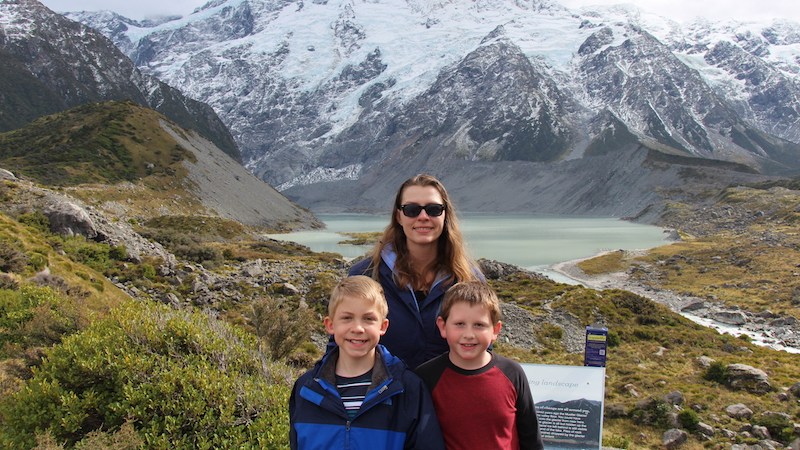 On arrival, we stopped at the visitor center and decided to do the Hooker Valley Trail. Picnic supplies were a bit limited, but the Hermitage Hotel had a little gift shop that had some bread and cheese, so we picked some up and headed out to the trail head. It was really too bad that we weren’t able to book earlier and get a family room in Mount Cook Village, it would have been an amazing place to stay.