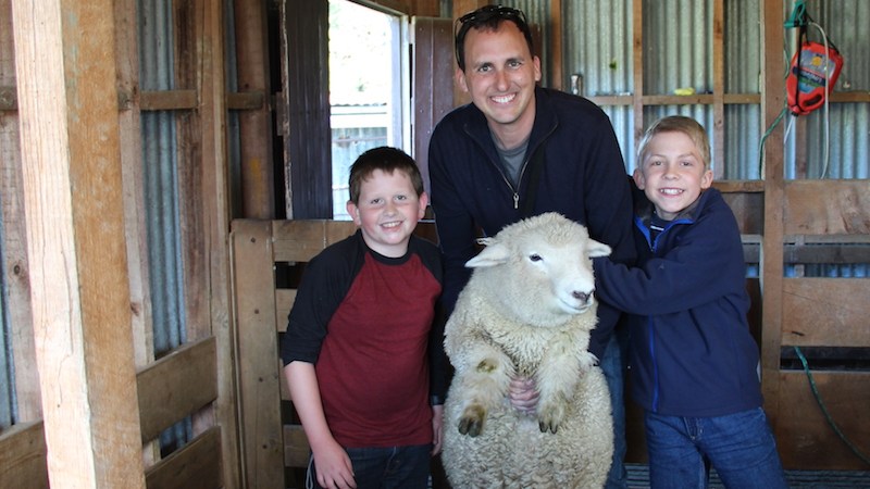 We watched a few, and then we were offered to let us try to catch them for him to tag. Jeremy was pretty good at it, but as much as John tried, they were too big for him. John was able to get his arms around the sheep, but he couldn’t quite get a good enough grip on the sheep to get their hoofs in the air. When someone caught one for him, he was able to drag it over to the tagging station and hold it still.