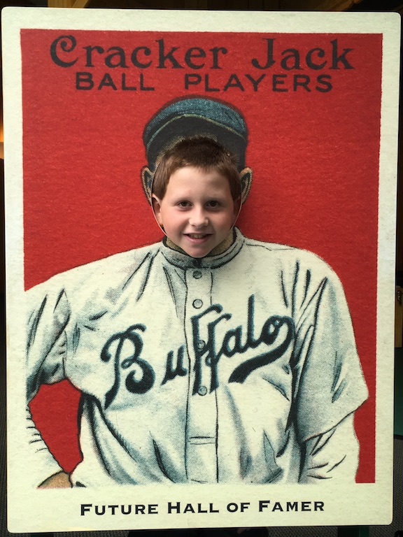 The front desk had given the boys a scavenger hunt paper that they could bring to the gift shop and get some baseball cards and a piece of bubble gum if they got everything right. The bubble gum cinched the deal, and they happily poured over the museum to try to find the answers. Dad and I were able to read our articles leisurely and enjoy the things we were learning while the kids found the San Diego Chicken, some info on Jackie Robinson, and other such details. The kids were super excited that they had just learned about Jackie Robinson in Magic Treehouse’s A Big Day for Baseball.
