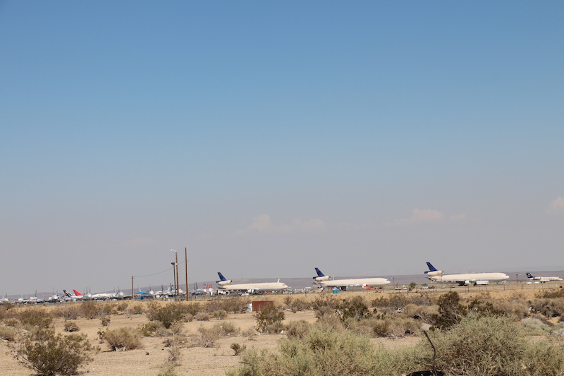 After a five hour drive, our first semi-major stop was at the Mojave Airplane Graveyard. I handed James, the airplane fanatic, my phone and told him to find a spot to drive to. The GPS took us to the main gate, which was right next to a bunch of his favorite planes, but alas, it was closed and we could go no further. There were also signs posted saying that photography was not allowed. Next, we decided to stop by the Mojave Air and Space Port building that was a couple of blocks away. There was a nice man that told us that we already got the best vantage point at the main gate, although he said that if we came back on a weekday, the restaurant next to the Mojave Air and Space Port should have a nice view. Being a Saturday, we continued our drive along the fence, stopping at a grocery store that had a mediocre view of the planes.