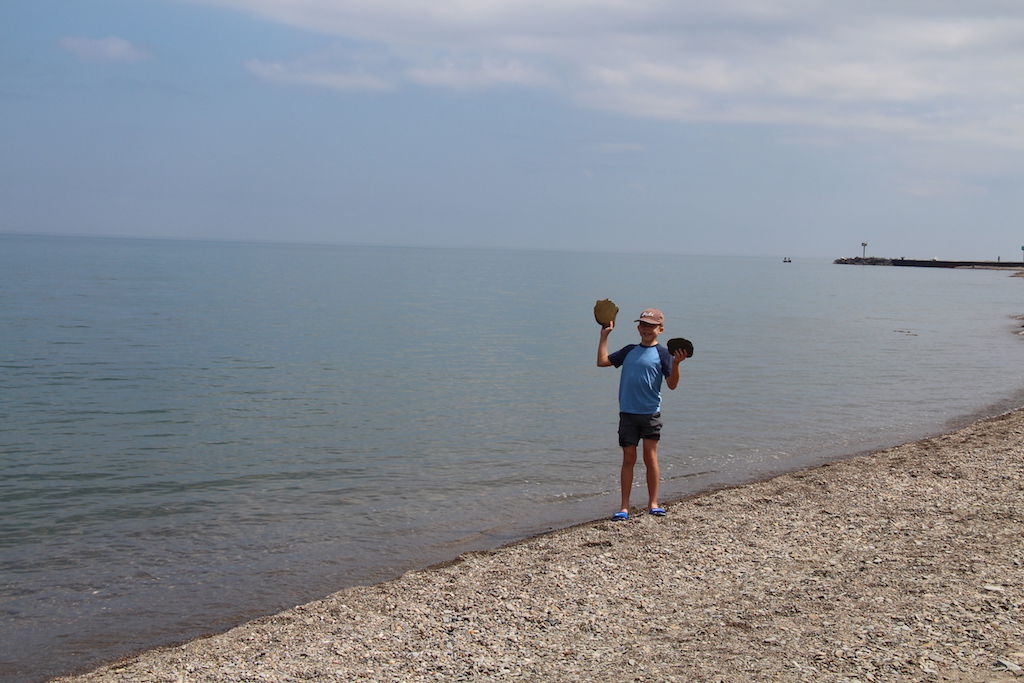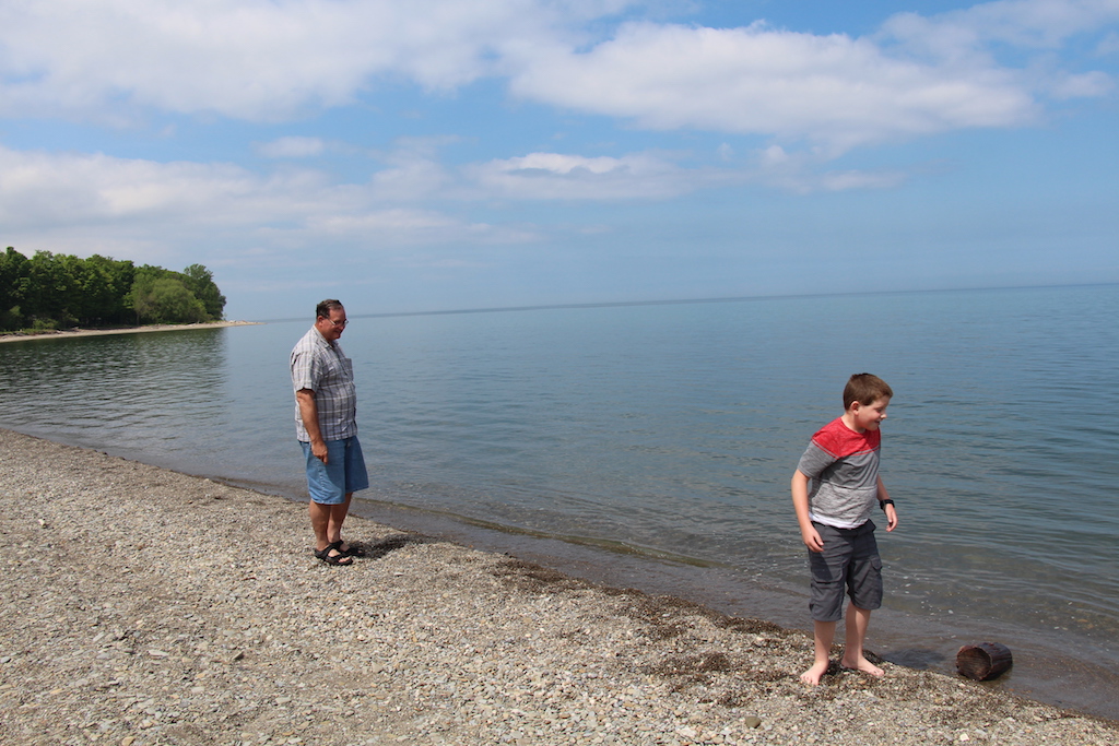 After passing Cleveland, we continued up the coast of Lake Erie. After consulting the GPS, we found a beach that was within a mile of the highway and stopped at Barcelona Harbor Beach. It was quite rocky, but the kids had a ton of fun skipping rocks and rolling some logs around on the beach. The kids thought it was funny that we were in “Barcelona,” and even funnier when we saw signs for Hamburg, Rome, and Poland.