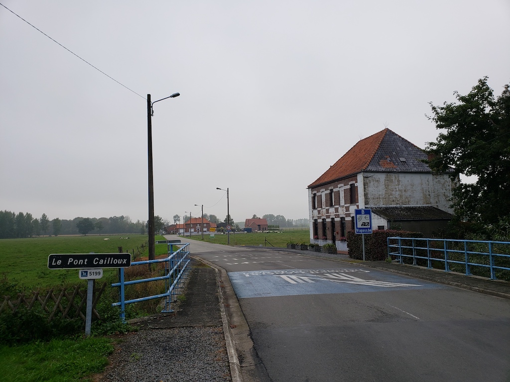 Then I crossed into France! While there was no big “France” sign, the region name was painted on the ground (picture on the left below is looking back into Belgium), and one of the houses right next to the border was flying a French flag.