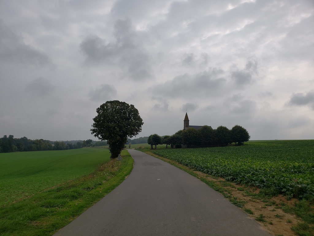The first 20km or so were in Belgium, with familiar peaceful farm roads next to the river. I’ve posted many river pics in the previous posts, though for variety, here are some cows along the path: