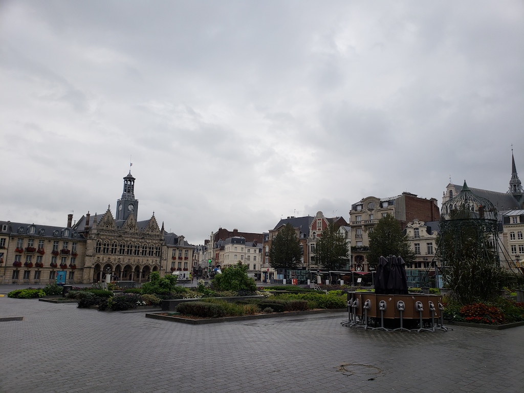 Finally, I arrived in Cambrai. I had started a little early at 8:15am because of the possibility of rain, but fortunately (except for lots of mist) stayed dry. Hence, I ended up arriving early at around 12:30pm. I had to wait a couple of minutes for my room to be ready, but was happy to get my shower. I had plenty of time to explore this small city, which had a nice cathedral as some other interesting medieval architecture.