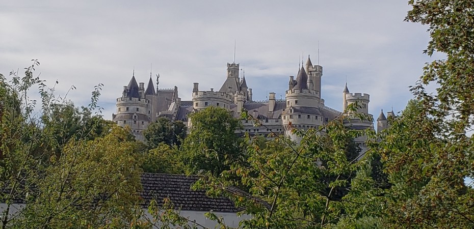 I really liked biking through the wooded area here. The paths were well adorned, with lots of trees and ferns. There were locals fishing at spots, and the area seemed to be well taken care of. Then in the distance was Pierrefonds Castle: