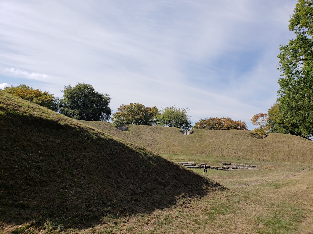 Not too far down the road, there was a 13th century abbey (St Jean Aux Bois), with its impressive stone towers out front. Come to think of it, most of the construction has changed from brick to stone over the past few days. A bit further down the road were also some Roman ruins of an ampitheater.