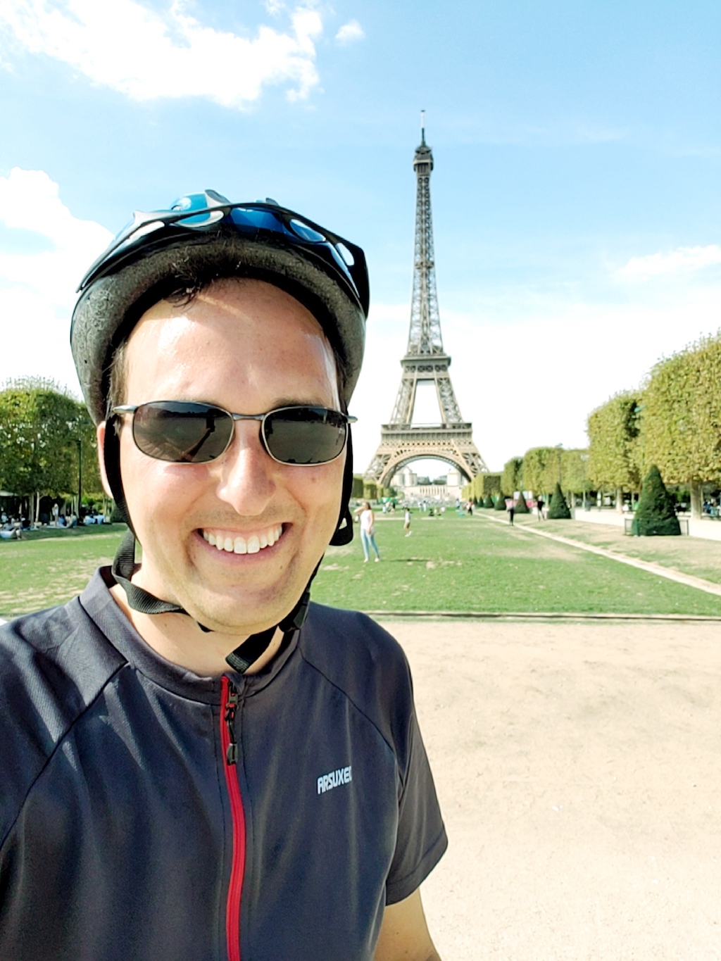 So… there was an optional ride to the Eiffel Tower programmed into the GPS that I could take (the bikes didn’t need to be back until 7pm), though with a warning that biking in Paris is somewhat chaotic. The Eiffel Tower is essentially on the far west side of the city, while the hotel was on the north east side, making it a 26 km (16mi) round trip. I was starting to feel a second wind, so I decided to do it, since I’d be waiting for my hotel room anyway.