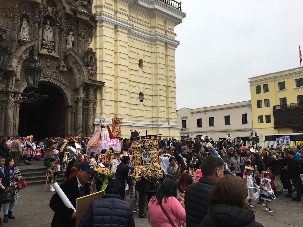 In the morning, we had a delicious breakfast at the hotel, the NM Lima. The variety and quality were both very nice. The hotel staff cautioned us that there were some teacher strikes and that many of the roads were closed. Looking at a map, we decided to go ahead and take an Uber to the historic center. Worst case was that we would have to take a long walk back to the hotel. We had been cautioned about taxi drivers not understanding English, so Uber seemed fairly safe since the driver would have a pinpoint on both where to pick us up and where to drop us off.