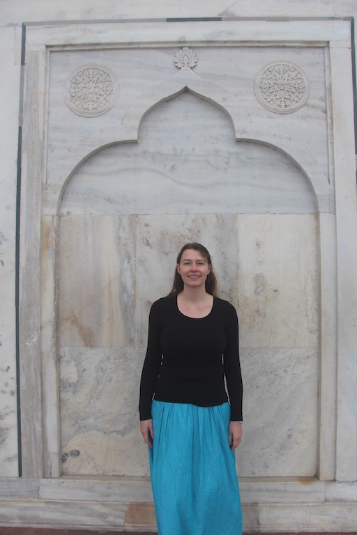 The crowds were picking up, so we decided to wander the grounds a bit. We went back to the reflecting pool, and while we couldn’t take some of the super cool pictures that you could get on a clear day, we still had fun pretending like we could see the Taj Mahal in the background.