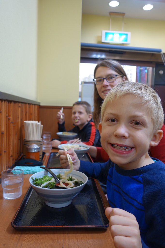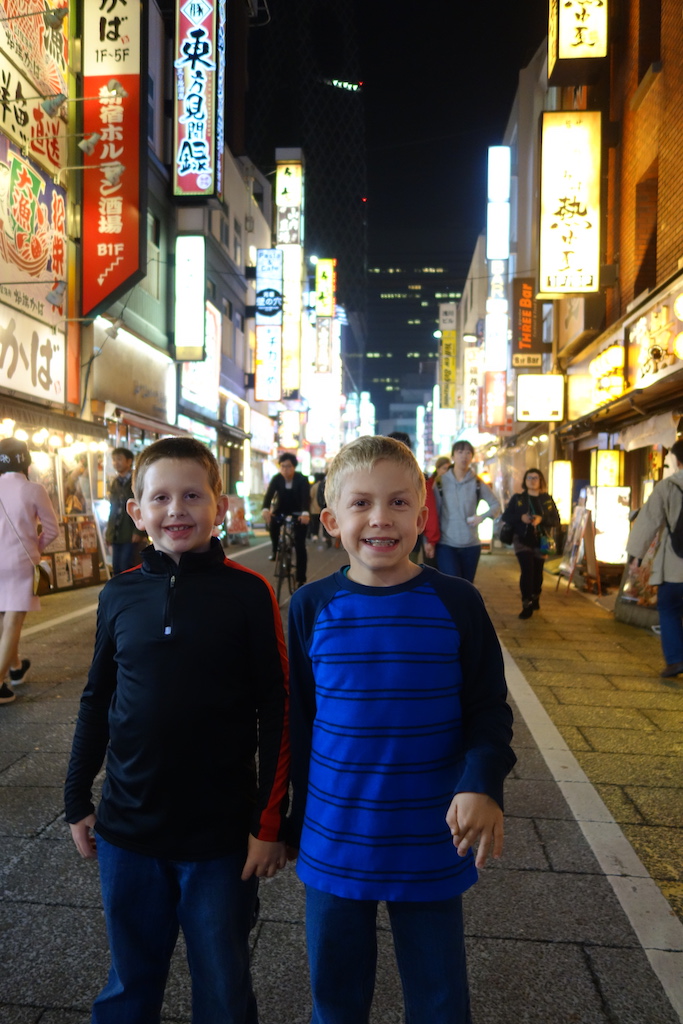On arrival, we dropped off our bags and headed out for a fun evening in Shinjuku. The visual stimulation really helped the kids stay awake so that we would have fewer problems with jet-lag. We wandered a bit, picked up some noodles for dinner, and mostly just enjoyed the atmosphere.