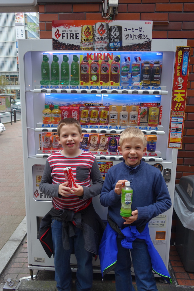 The controversial Yushukan War Memorial Museum was next. All at the same time, it was fascinating (a lot of detailed coverage of things more relevant to Japan), horrifying (the perspective of WWII and other local wars was more than a bit off), and delightful to the kids (it had numerous very well done displays). On leaving, we took a walk by the Imperial Palace and headed back to the apartment, making sure to stop at delicious vending machines all throughout the day. I drank way too much hot milk tea, but I figured that I was burning enough calories, that it really didn’t matter.