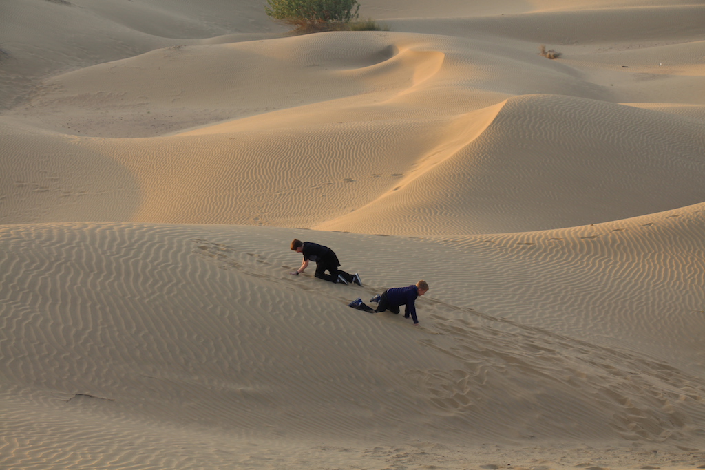 While the boys frolicked in the sand dunes: