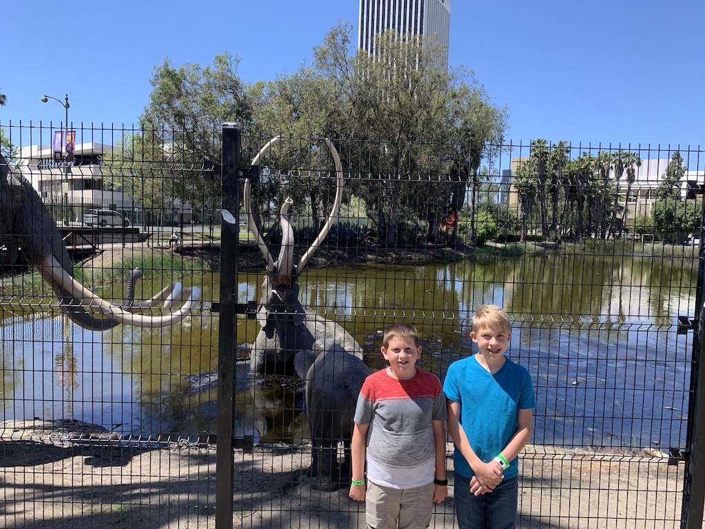 Since we knew we were planning to have a lot of beach time, we decided to do something completely different and make a stop at the La Brea Tar Pits. Upon entering, the kids were fascinated with the exhibits showing how the animals would become entrapped in the pit and ever-so-slowly sink, families watching from the side.