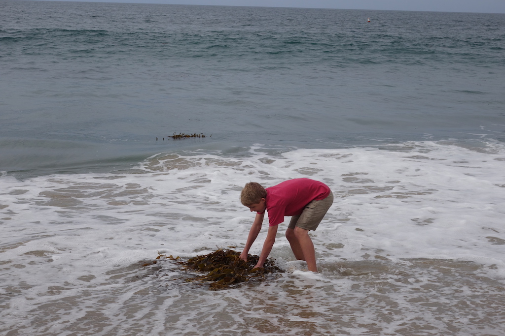 Then the kids decided to have some fun at a spot near our apartment. James was fascinated by the seaweed.