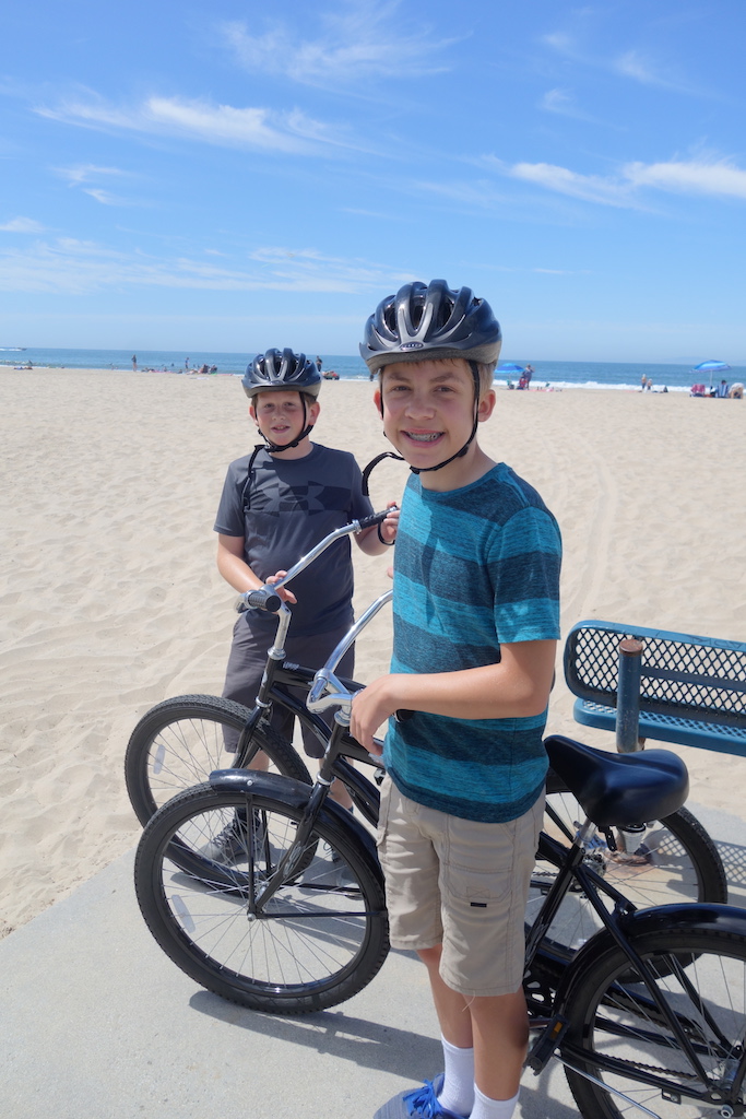 After continuing a ways down the extremely wide bike path, we decided to turn back. One of the kids had been battling a minor cold all week, and after 6 miles, his throat started hurting again. So, we decided to turn back about a mile and a half from the more central area of the beach