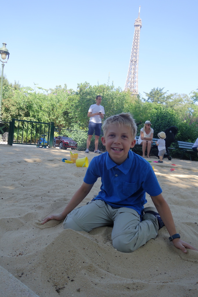 Continuing our morning wander, we made it to the Eiffel Tower. This was our third visit to Paris, second time with the boys, and since they had never been up to the top, we decided to get in line. Unfortunately, after waiting a while and just before paying for our tickets, the police started shooing everyone away. Some sort of security issue. With no timeframe when we should return, we left and decided to venture elsewhere. At least we hadn’t bought our tickets yet.