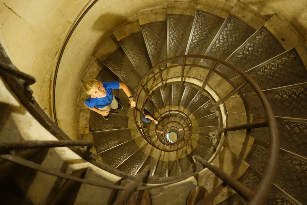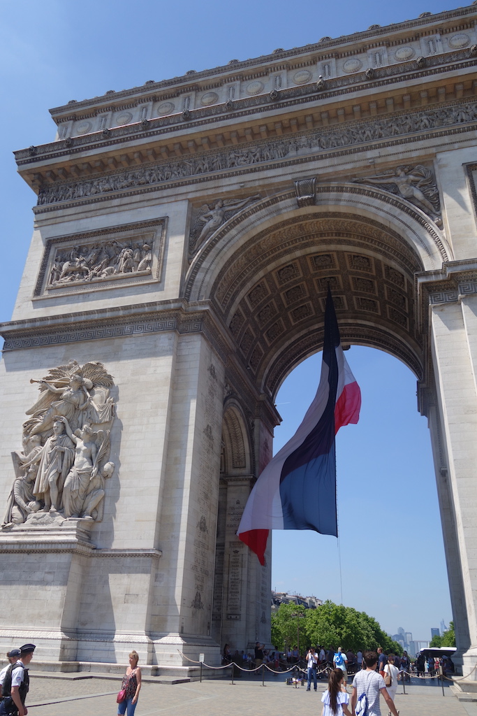 After regrouping, we went down the street to l’Arc de Triomphe. The boys decided to practically run up the stairs.