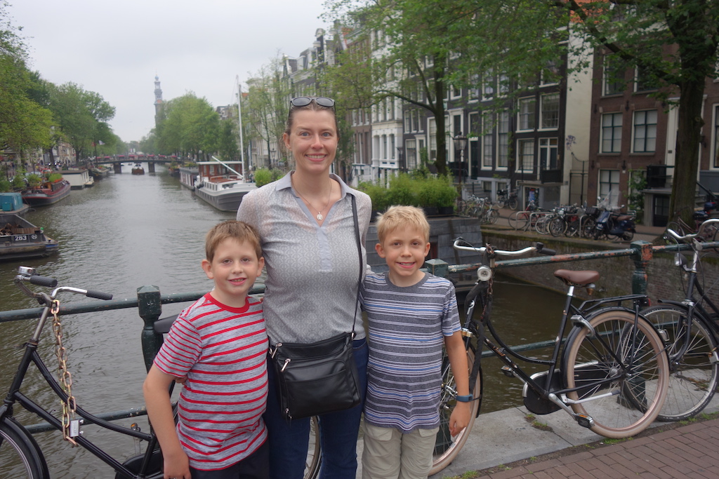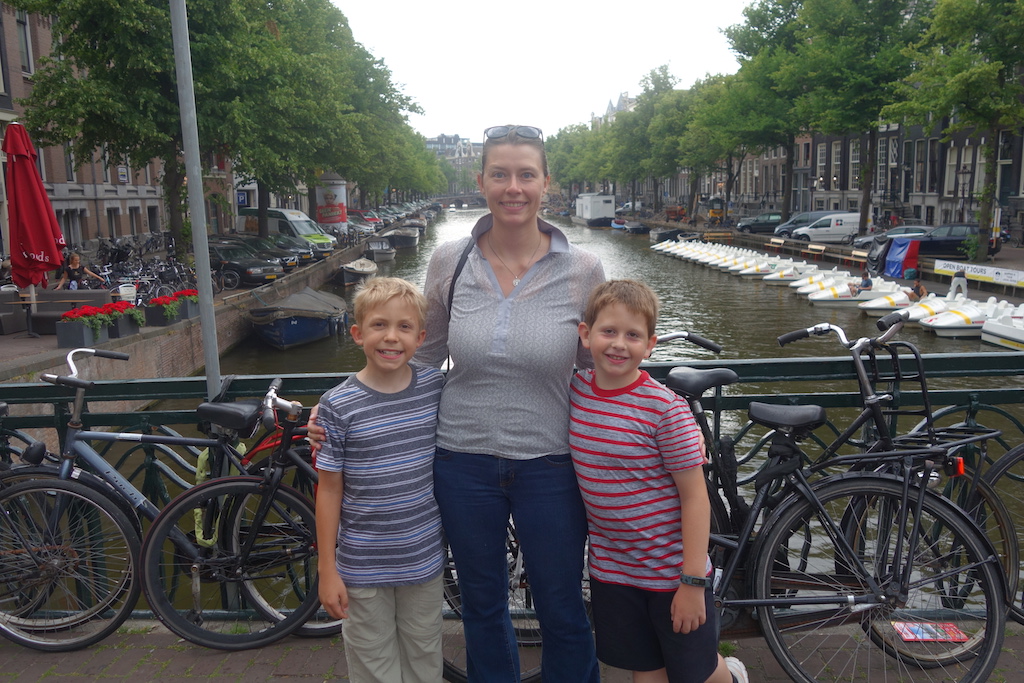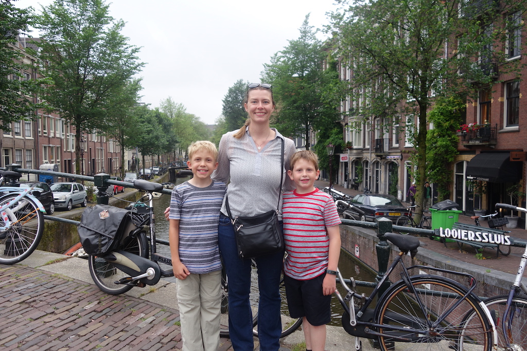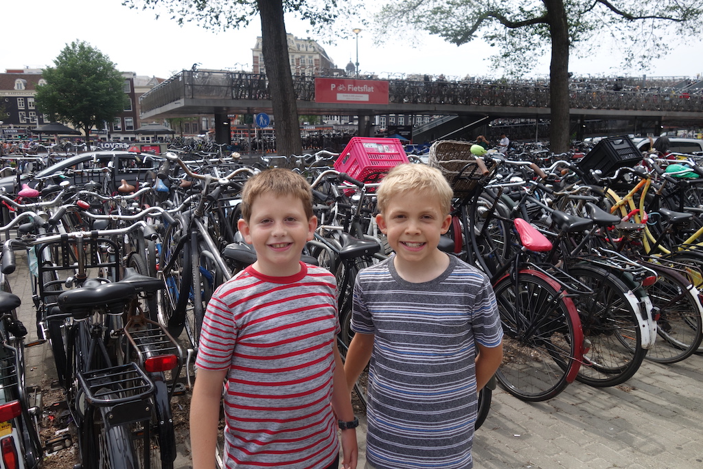 To our great relief on arrival in Amsterdam we immediately noticed that the air was significantly cooler than the heat wave that we faced in Paris and Bruges. The kids were delighted by the sea of bicycles! They had no idea that so many bicycles could be in one place. Even along the bridges, it was common to see overflow parking.