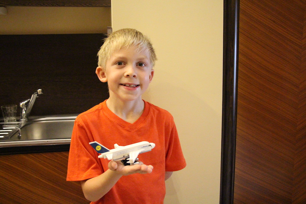After an early morning flight from the San Francisco Bay Area on Saturday, with layovers in both Boston and Frankfurt, we arrived in Budapest, Hungary, around 9:00AM on Sunday morning. James was thrilled with his Lego Lufthansa airplane that one of the flight attendants gave him. Both boys enjoyed the chocolates. Overseas flights still seem to give occasional toys/schwag to kids, in a way that vanished decades ago on domestic journeys.