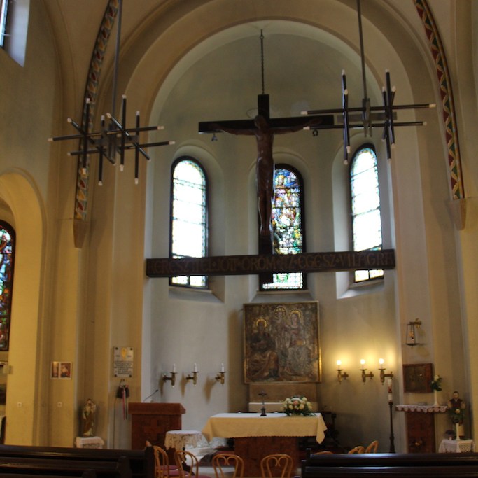 Nearby was a little chapel that we ducked into. Reasonably simple, but the stained glass windows were very nice.