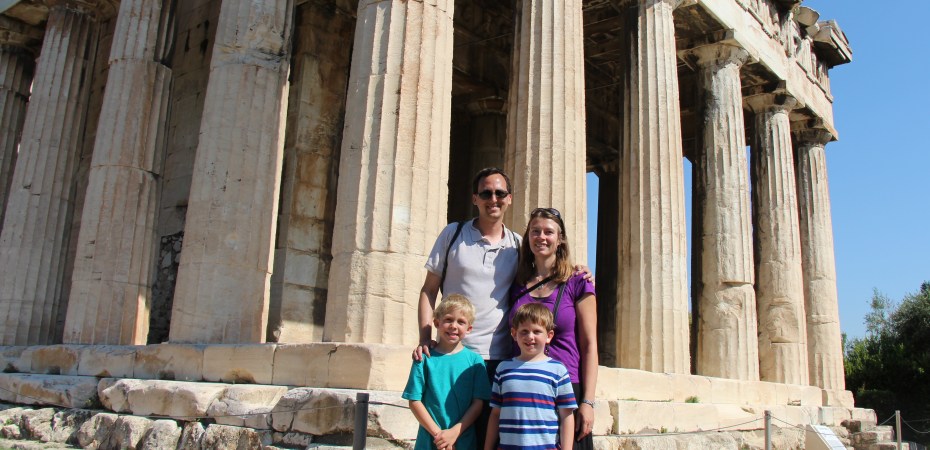 After a late 10:30pm arrival at our hotel the night before from Santorini, we were a bit hesitant to wake the boys for an early sightseeing excursion. But, we really wanted to see as much as we could in the single day that we had in Athens, so we woke them up and headed for the Acropolis.