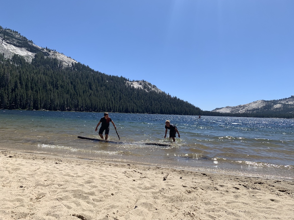 - Took a swim break and had a picnic at a small beach on Tenaya Lake.