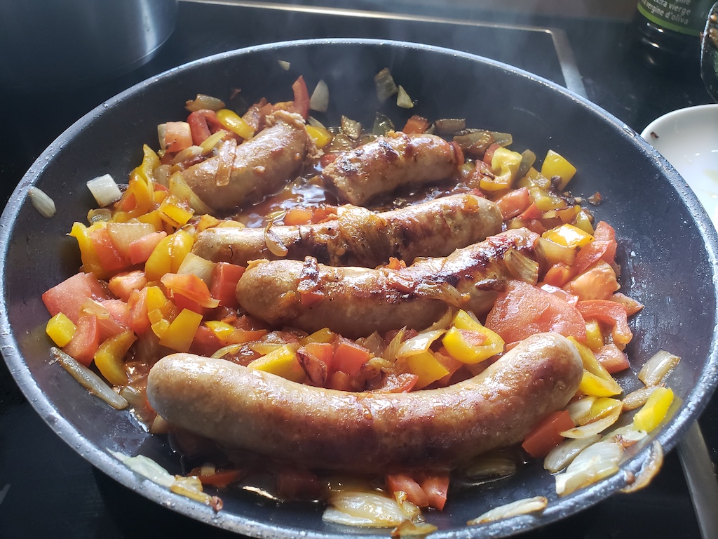 On arrival, it was getting close to lunchtime, so we stopped at a little sausage and rösti (Swiss hash browns) stand that we like. There are only three tables, so snag one if it is available.