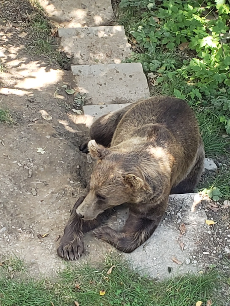We continued on to the Bear Pit and found the bear! Or, at least we saw its ear and part of its face. It was in an obscure corner and was using some bushes to hide.