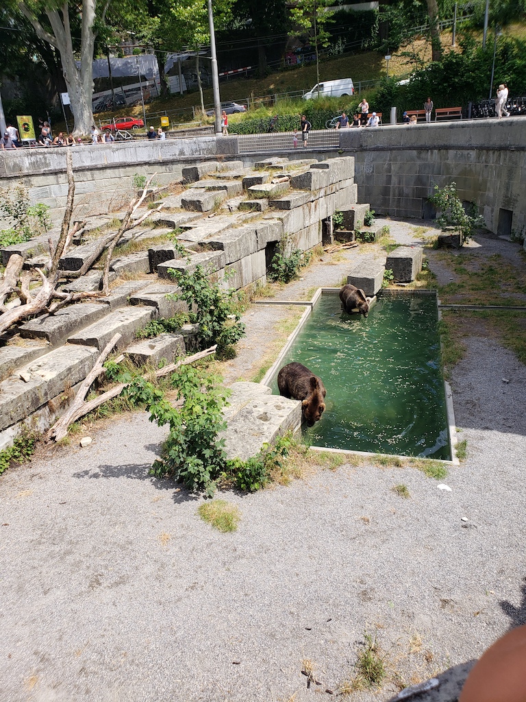 Deciding we were tired of the rain, we went back to the hotel to rest and wait it out. Once it had mostly passed, we headed back to the clock tower and decided to walk down the hill to the Bärengraben, or Bear Pit, but none of the bears were out. Disappointment!