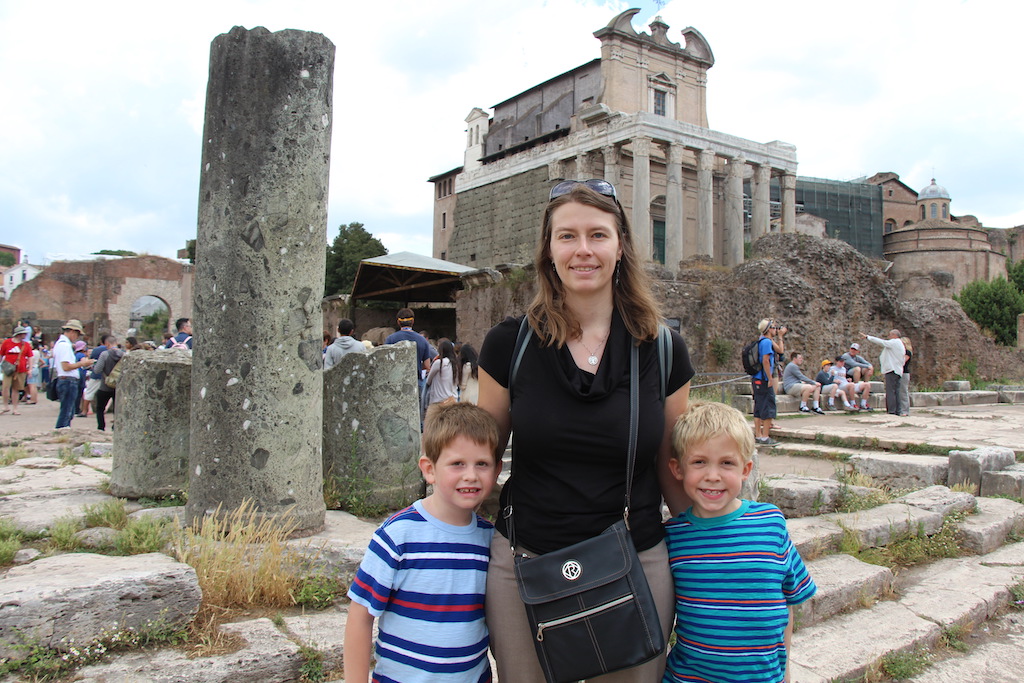The second time we went to the Roman Forum was in June of 2015, and we were with young children. We decided to do the Colosseum first, while the kids were fresh, spend a very short time on Palatine Hill, and then go to the Roman Forum. We arrived at the Roman Forum just before lunch in the heat of the day. While Jeremy and I were fine, the kids were so hot, hungry, and cranky, that we ended up not being able to see it well. Apparently, we didn’t conserve quite enough energy, and should have found some lunch between sights.