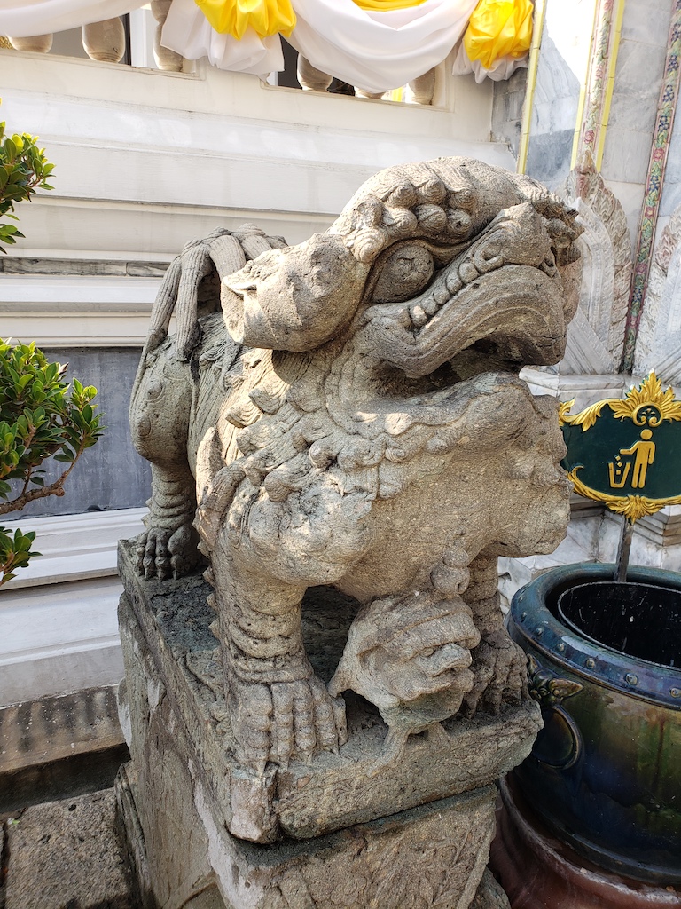 This temple is best known for the largest reclining buddha in Thailand. We wandered around for a while, but when one of the boys and I started fading from the heat, we decided to head out and find some lunch.
