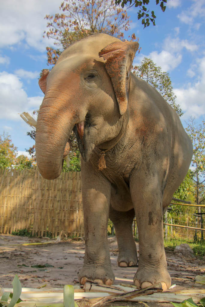 We were horrified to learn about the training process that each of these elephants had gone through to either allow someone to ride them or to force them to work in a logging camp. Picture big hooks that are used to beat the elephants into submission, often times leaving horrid scars.