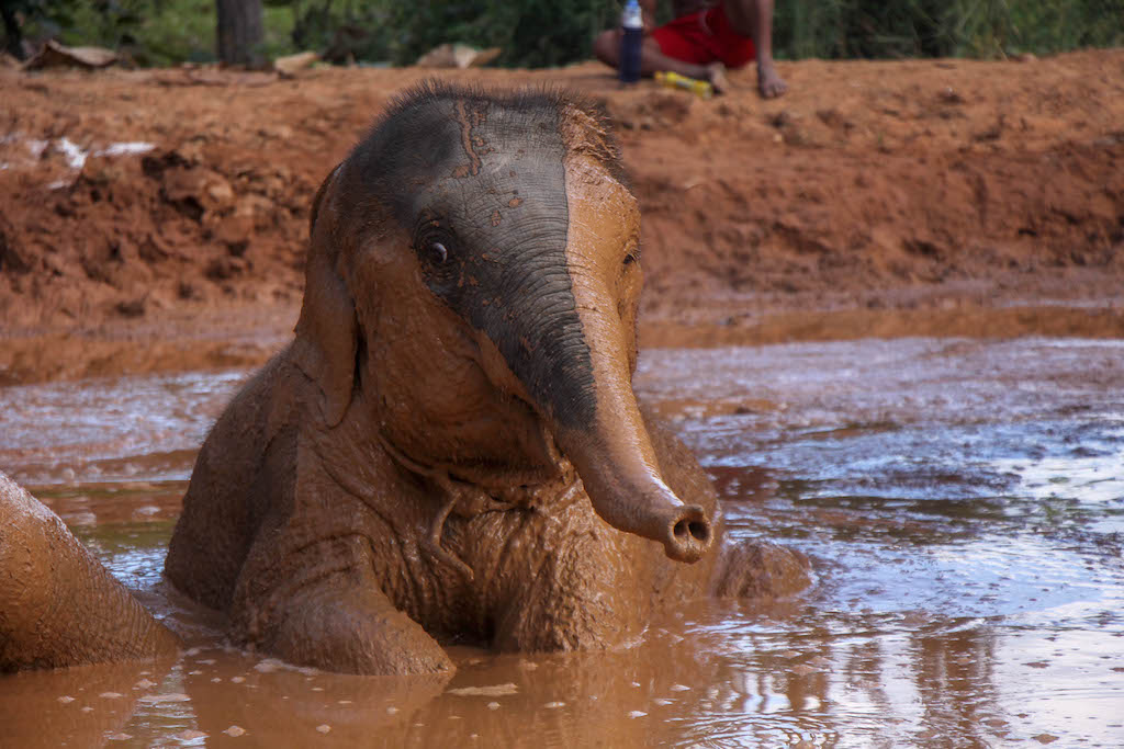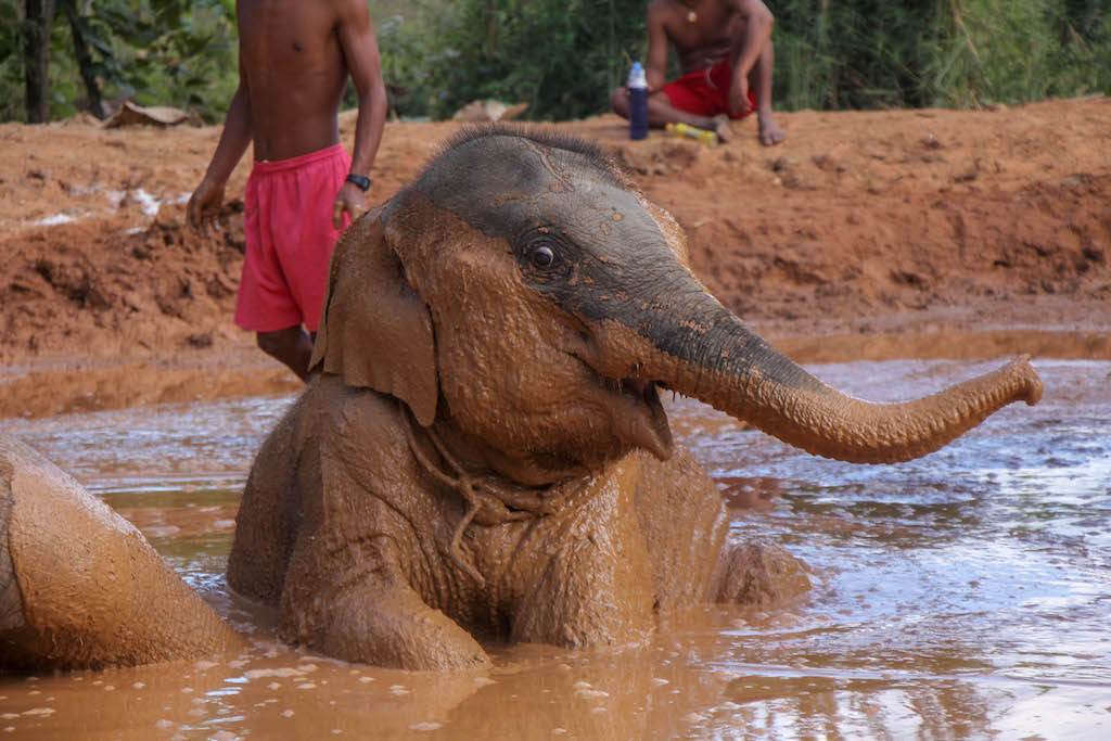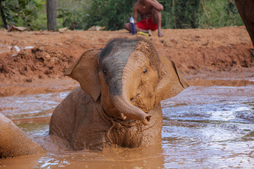 A couple of elephants obliged us by lying down and letting us slather them in mud.