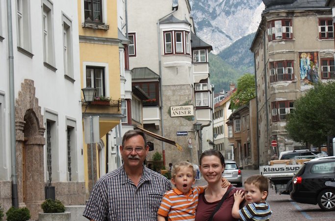When looking through our Rick Steves guidebook, we noticed that he recommended a visit to Hall, which is only 10 minutes from Innsbruck. We figured that at a minimum it would be a cute lunch stop. An added bonus was that wouldn’t have to worry about driving the car through a larger city and trying to find parking. After the near parking disaster in Füssen, we were a little more cautious about parking garages. Win-win!