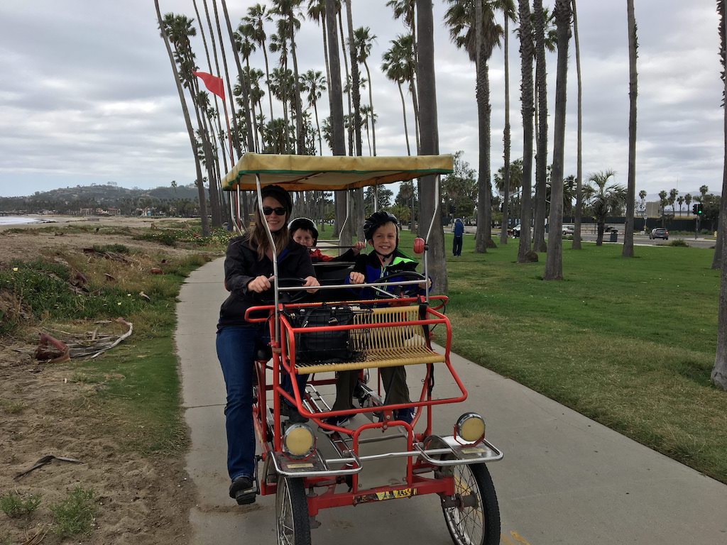 - In the afternoon, we saw the Santa Barbara mission and rented a large beach bike surrey to keep the kids happy.