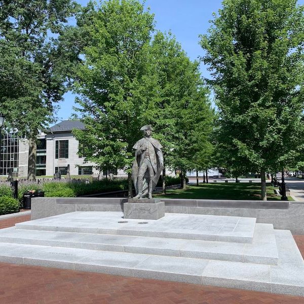 Having gone through Boston, I crossed a river to more suburban Quincy. One surprise was the recently built Hancock-Adams Common in downtown Quincy, honoring two famous figures from this town (Braintree at the time) – John Hancock and President John Adams.