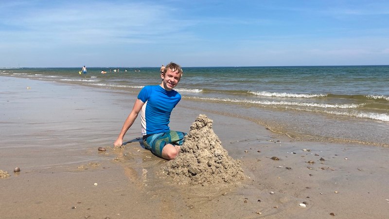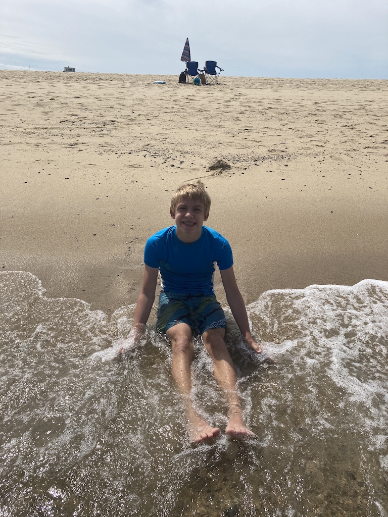 On research, I saw a comment that it was a popular surfing so I figured James would have fun playing in the waves, and that he was a strong enough swimmer to handle a surfing beach. Unfortunately, on arrival, we discovered that that the surf was quite tame and there wasn’t a surfer in sight. To make matters worse, Covid-19 has severely curtailed flights and we only saw a couple of airplanes the entire time we were there. Still fun, but this was about as big as the waves got: