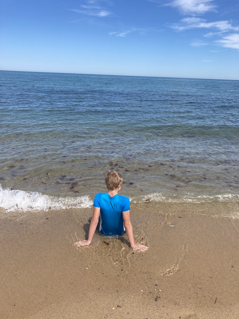 James and I were chest deep in the water when we saw someone a lot further out than us who was knee deep. Feeling curious we went to investigate and found there was a lengthy sand bar that made the water quite shallow. Not only was it fun to explore, but the shallower water was also a bit warmer.