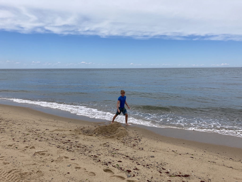 So, James and I started looking at the map for beaches. I was eying the small beaches near Dennis to make it easy for Jeremy to meet us, but James had his heart set on the much longer Sandy Neck Beach in West Barnstable, so I went with it, knowing that timing on picking Jeremy up might be a bit trickier since James would need to change out of his suit and we would need to drive at least 30 more minutes.