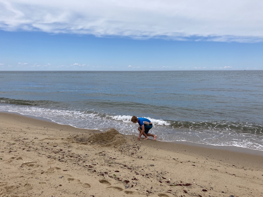 On our return, James built a sandcastle while I got bit by a zillion flies (probably either greenheads or horseflies).
