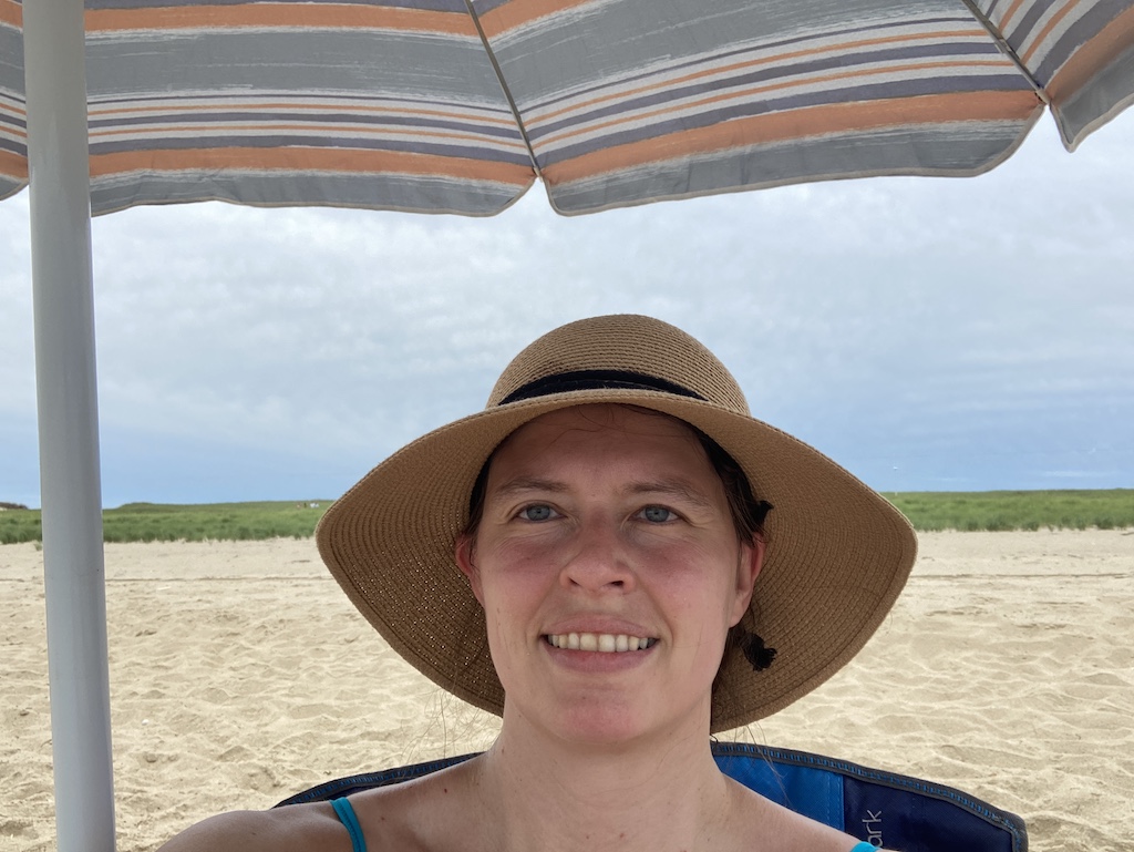 After parking, I set up the beach chairs and umbrella while James ran off to test the water. I came down to join him and when I looked back, to my horror, I saw our umbrella tumbling across the beach. As I took off running, I spotted a life guard also running towards me and the umbrella, both of us reaching it at the same time, and before it made it to any of the other groups on the beach.
