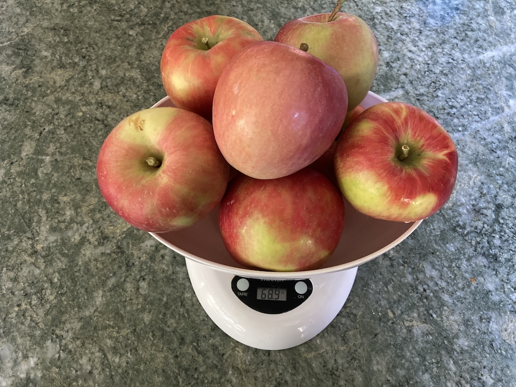 Fuji apples are easy to get at the grocery store, so we knew what we were getting, and were delighted. The apples were very similar in color to the Honeycrisp, but upon tasting, we were happier with both the texture (a little crisper) and the balance of sweet and tart.