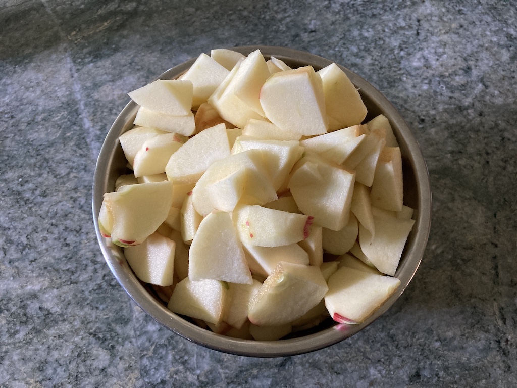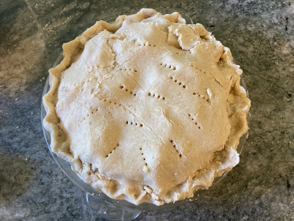 We sliced up a bunch of apples and enjoyed them fresh, and then I started on my apple pie. I love flaky pie crusts with a bit of almond flour substituted for a little of the regular flour, but a recent almond sensitivity gave me pause and I went with a regular pie crust.