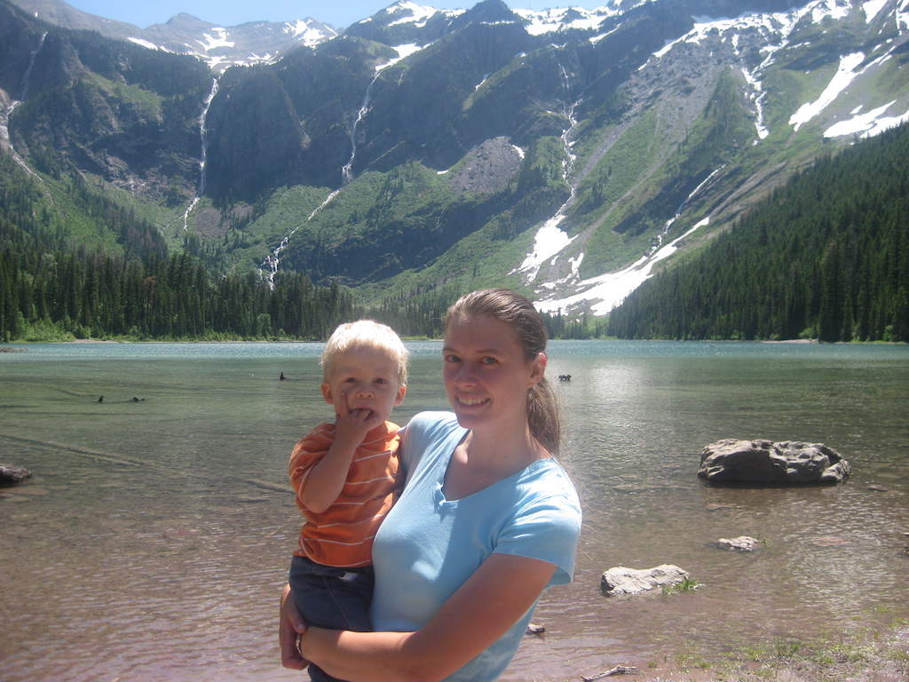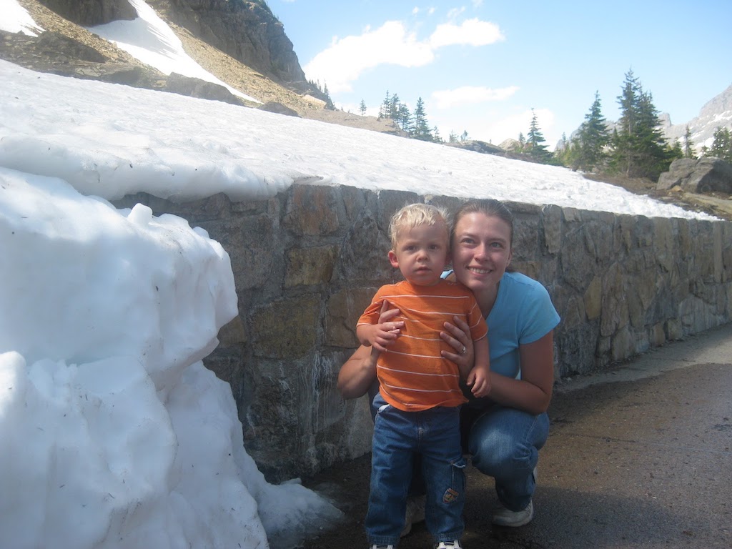 Here are a few more pictures from other years’ trips – one from a hike to Avalanche Lake, one by the snow towards the top of the Going to the Sun Road, outside the Glacier Park Lodge on the east side, and a picture by Many Glacier.