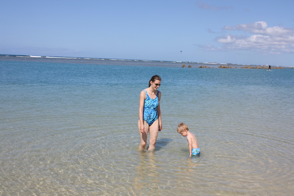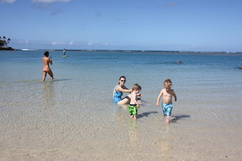 Since we were in Hawaii with toddlers, surfing beaches were not on our itinerary. Instead, we focused on beaches with tiny waves, either from natural causes, breakwaters, or the formation of lagoons.