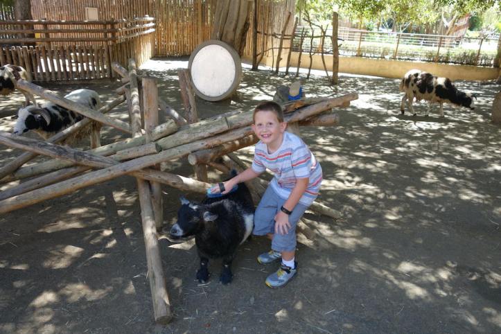 And no zoo would be complete without a petting zoo. It wasn’t quite like feeding the hippos in Thailand – “Mom, can I touch the hippo’s tooth?”, but the boys had tons of fun grooming the goats!