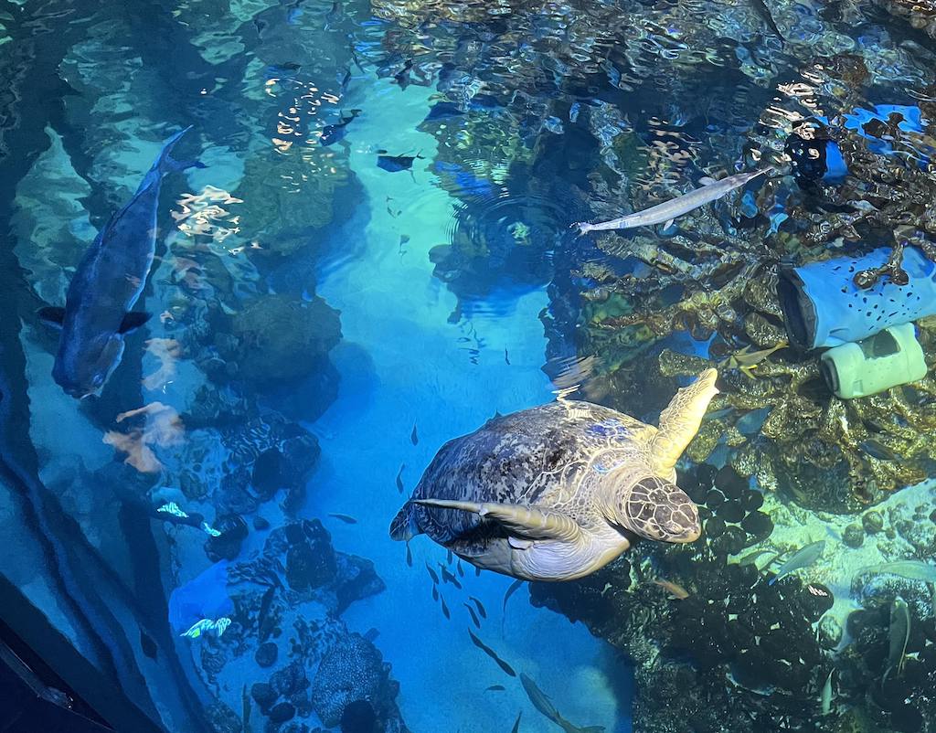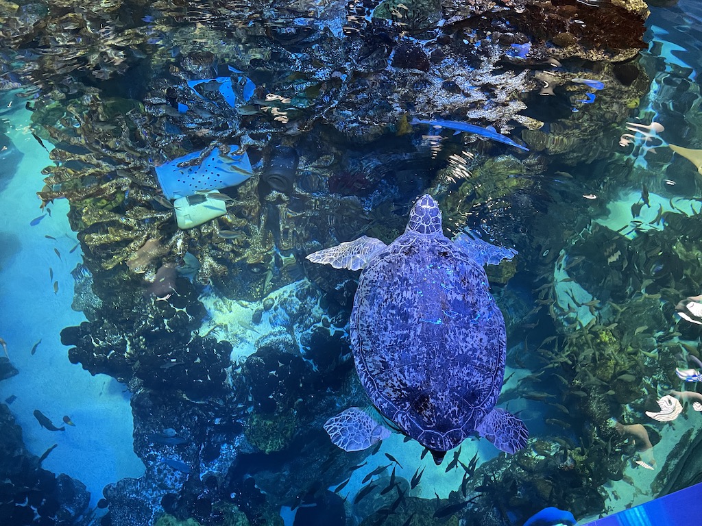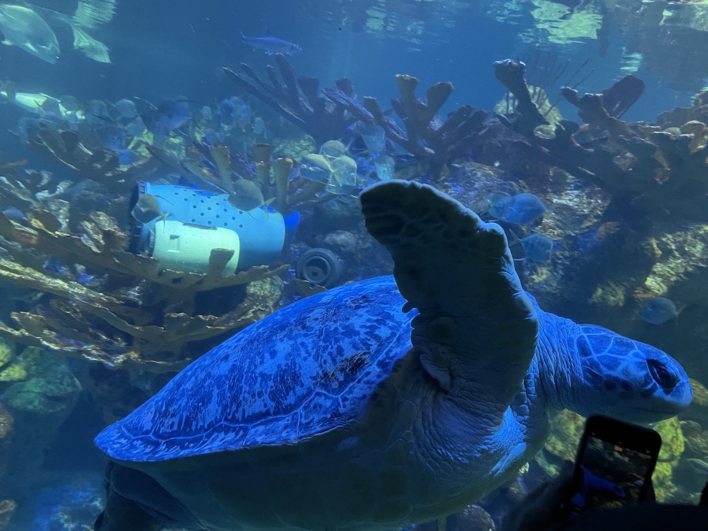 At the top of the spiral, you can admire the largest tank from above. We were delighted by the turtle, Myrtle, who is likely between 90 and 95 years old!