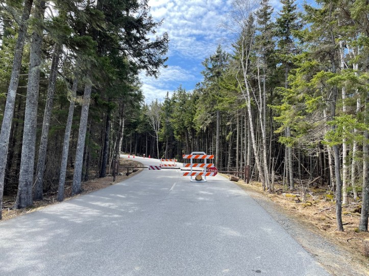 At this point, it was the end of the road for Acadia National Park in early April. The entire (paved) loop road typically doesn’t open until at least April 15, the unpaved roads don’t open until May 15, and we were early for both of these dates. In any case, lesson is to check their website for closures.