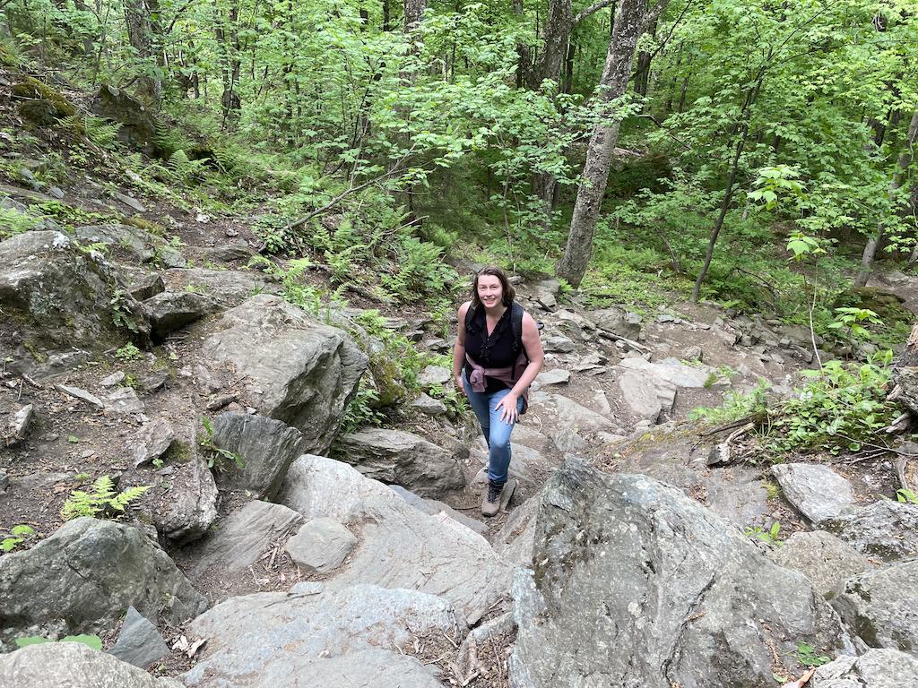 From there, just follow the signs to Stowe Pinnacle. Anytime we got slightly confused about the route, we found blue spray paint on a tree that marked the correct path.